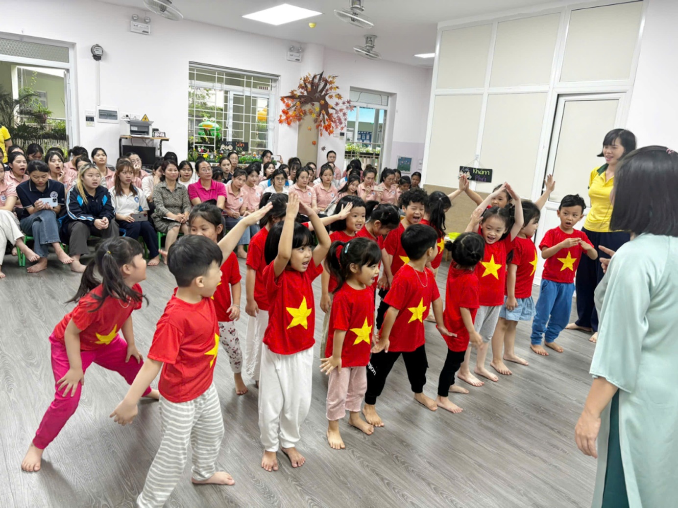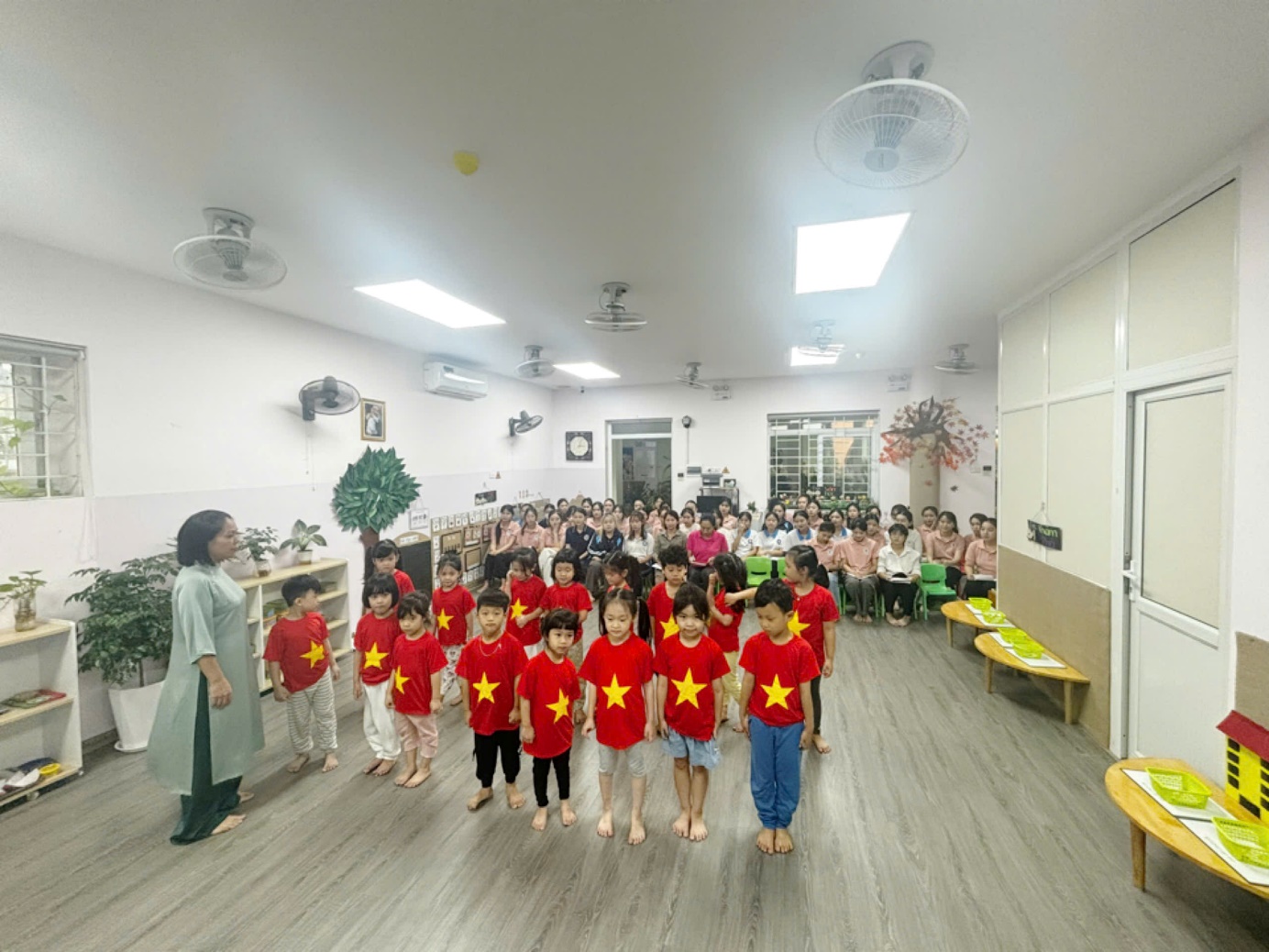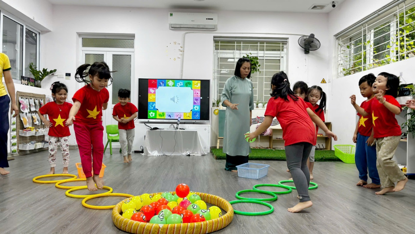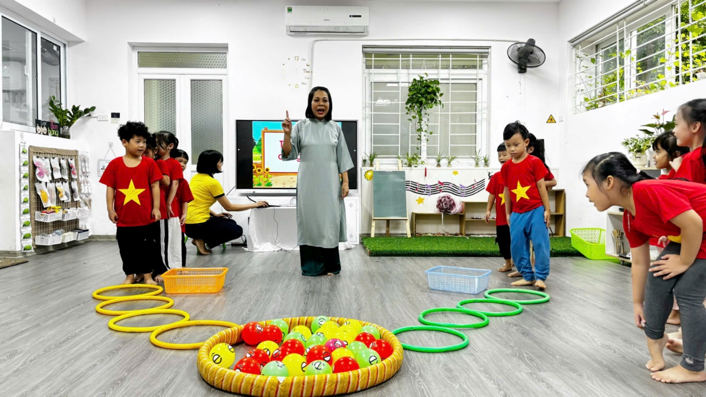 Với sự dẫn dắt nhẹ nhàng, linh hoạt cùng hình thức đổi mới sáng tạo, phong phú cô Thủy đã tổ chức giờ học một cách thú vị, thu hút, giúp trẻ thể hiện tính tích cực, chủ động khi tham gia các hoạt động. Giờ học đã được cô thiết kế hoạt động thích hợp, các trò chơi thực hành trải nghiệm được vận dụng một cách linh hoạt theo chủ đề để thu hút sự tham gia của trẻ.