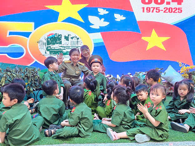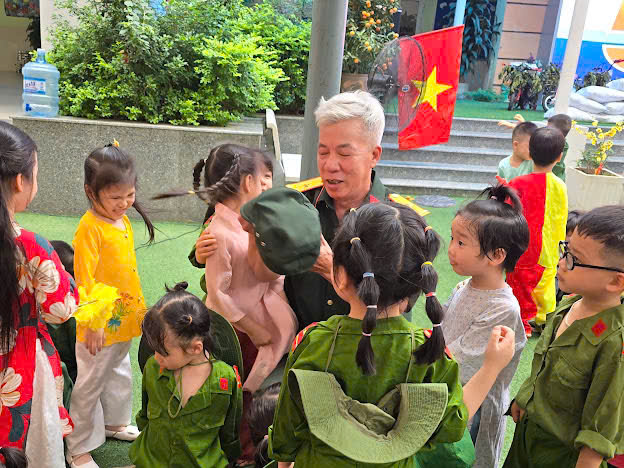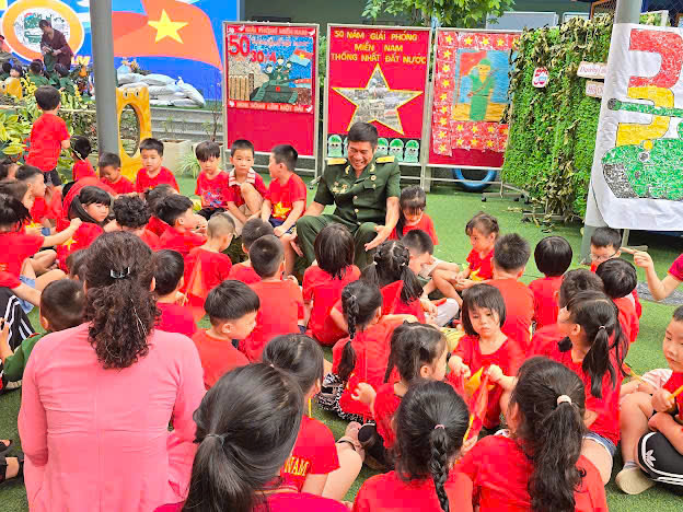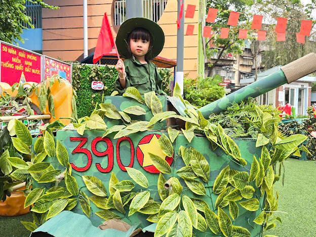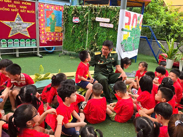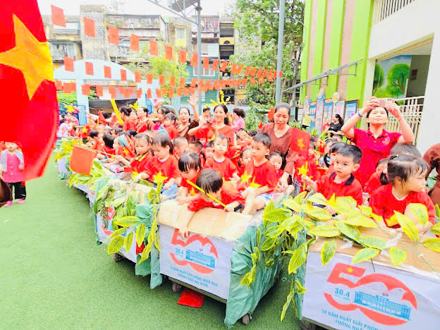 Mở đầu chuỗi sự kiện là lễ mít tinh trang trọng, nơi các bé được nghe những câu chuyện lịch sử giản dị thông qua các bộ phim tài liệu về lịch sử được tái hiện trở lại, dễ hiểu về ngày 30/4. Tiếp đó, hoạt động diễu hành đầy khí thế với những lá cờ đỏ thắm tung bay, những bước chân nhỏ bé nhưng rộn ràng niềm vui chiến thắng đã tái hiện một cách sinh động khí thế hào hùng của dân tộc trong ngày lịch sử. Và buổi gặp mặt thân tình giữa các bác cựu chiến binh – những người đã trực tiếp làm nên trang sử vẻ vang của dân tộc. Những câu chuyện xúc động, những lời căn dặn ấm áp đã giúp các bé cảm nhận sâu sắc hơn giá trị của hòa bình và độc lập.