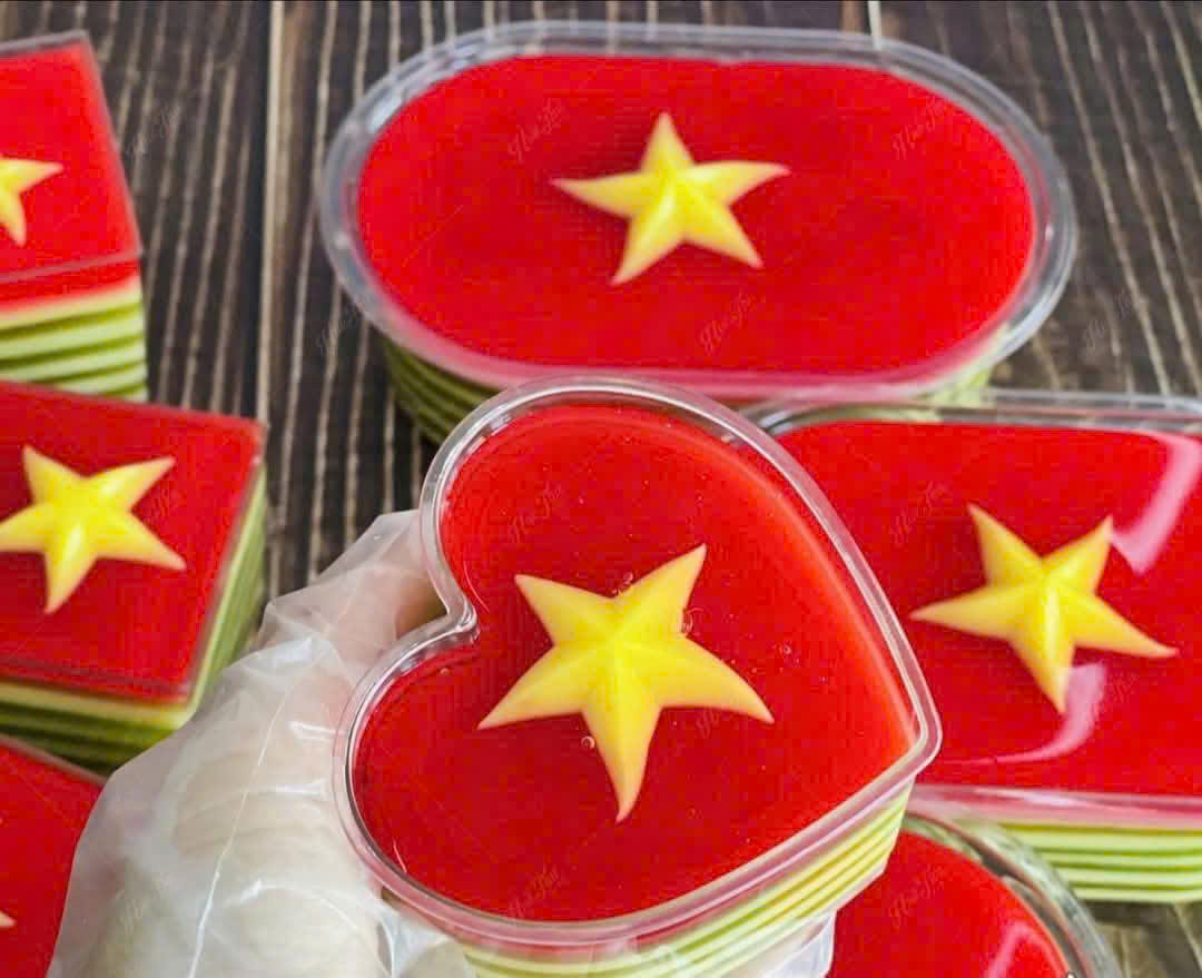 Hình ảnh sản phẩm thạch rau câu hình lá cờ Tổ quốc được các bé trường Mầm non Họa Mi thực hiện