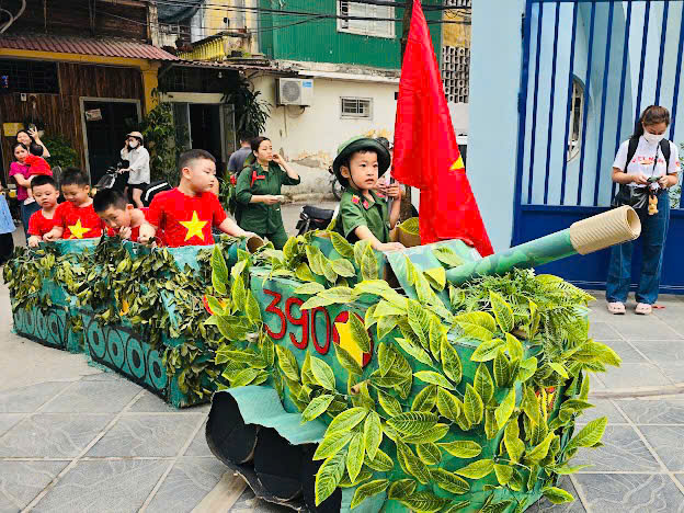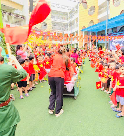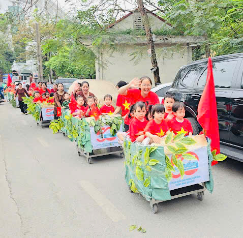 Buổi diễu hành diễn ra trong bầu không khí vui vẻ và đầy tự hào của cô và trò trường mầm non Họa Mi