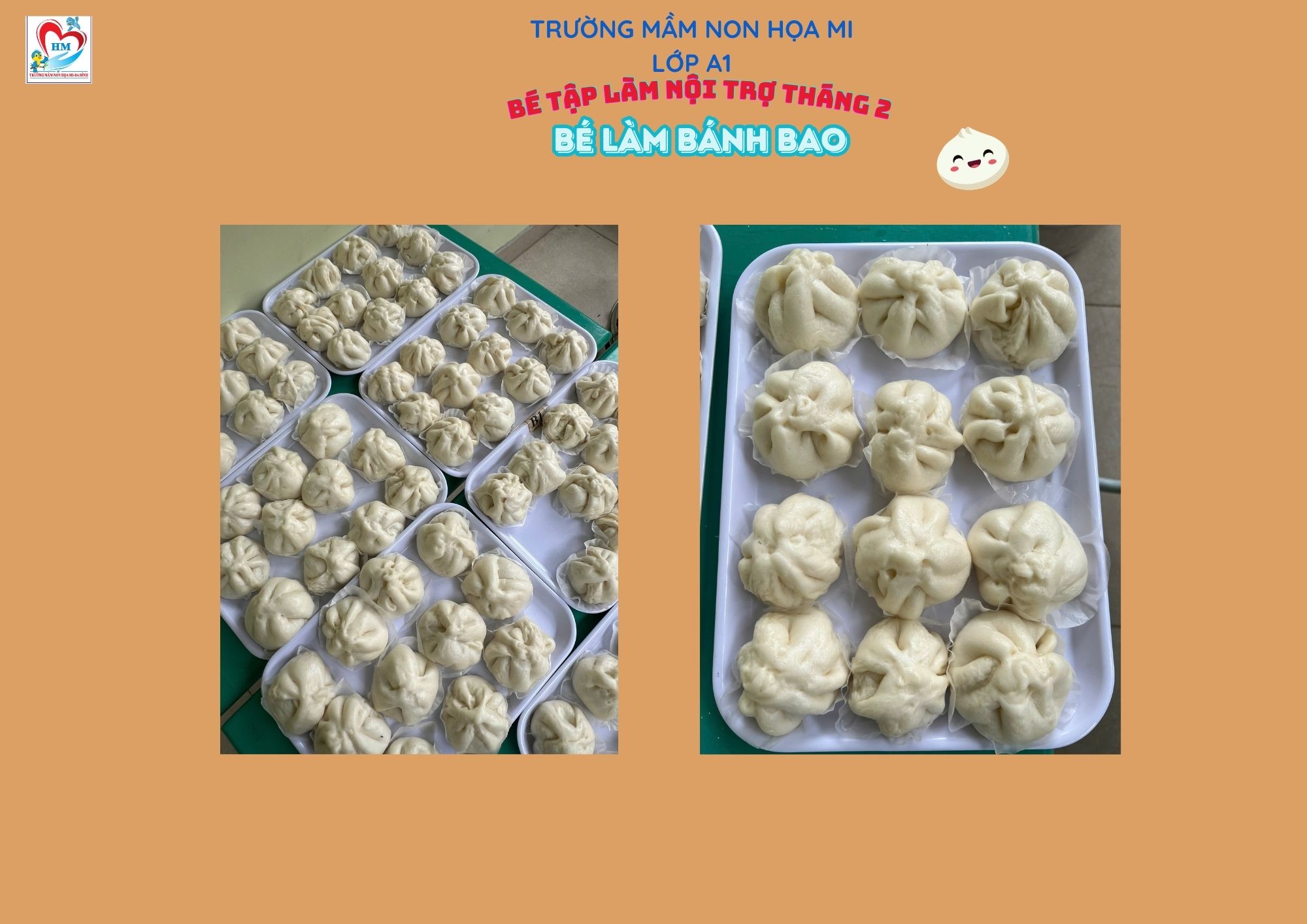 Sau khi hoàn tất việc tạo hình, những chiếc bánh bao nhỏ xinh được đặt vào xửng hấp. Chờ đợi bánh chín cũng là một khoảng thời gian thú vị khi các bé cùng nhau trò chuyện, háo hức ngắm nhìn chiếc bánh dần nở phồng lên trong làn hơi nóng. Khi bánh đã chín, cả lớp vui mừng thưởng thức thành quả của mình. Những chiếc bánh bao mềm mại, thơm phức không chỉ là món ăn ngon mà còn là thành quả đầy tự hào của các bé sau một buổi học tập chăm chỉ.