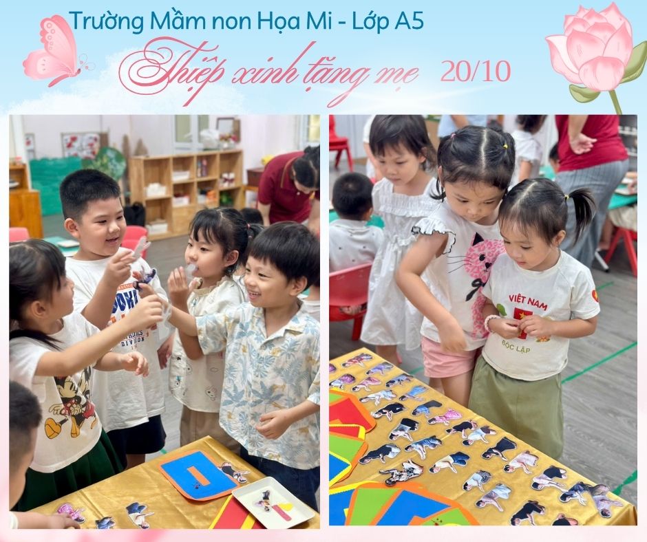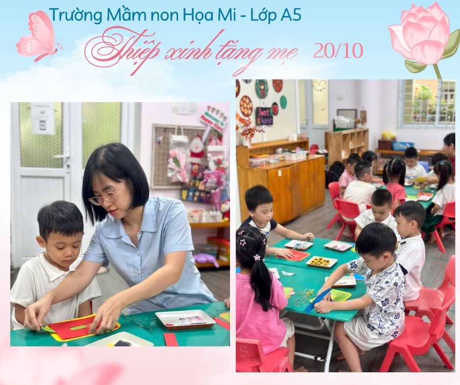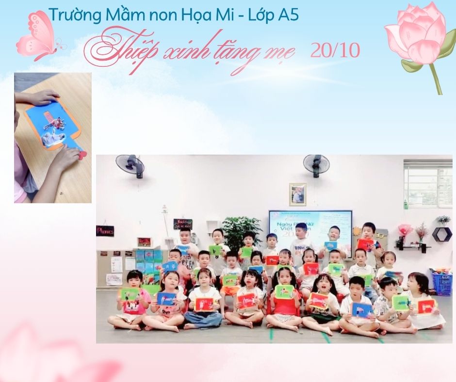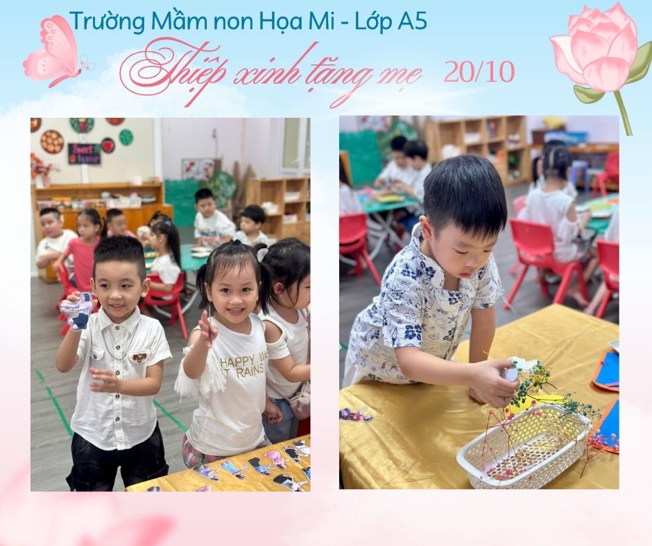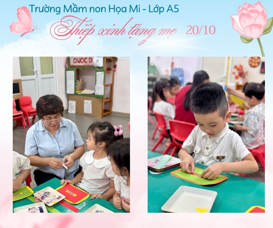 Nhân kỷ niệm Ngày Phụ nữ Việt Nam 20/10, các bé lớp Mẫu giáo lớn A5 – Trường Mầm non Họa Mi đã cùng cô giáo tham gia một hoạt động thật ý nghĩa và tràn đầy yêu thương: làm bưu thiếp tặng mẹ.