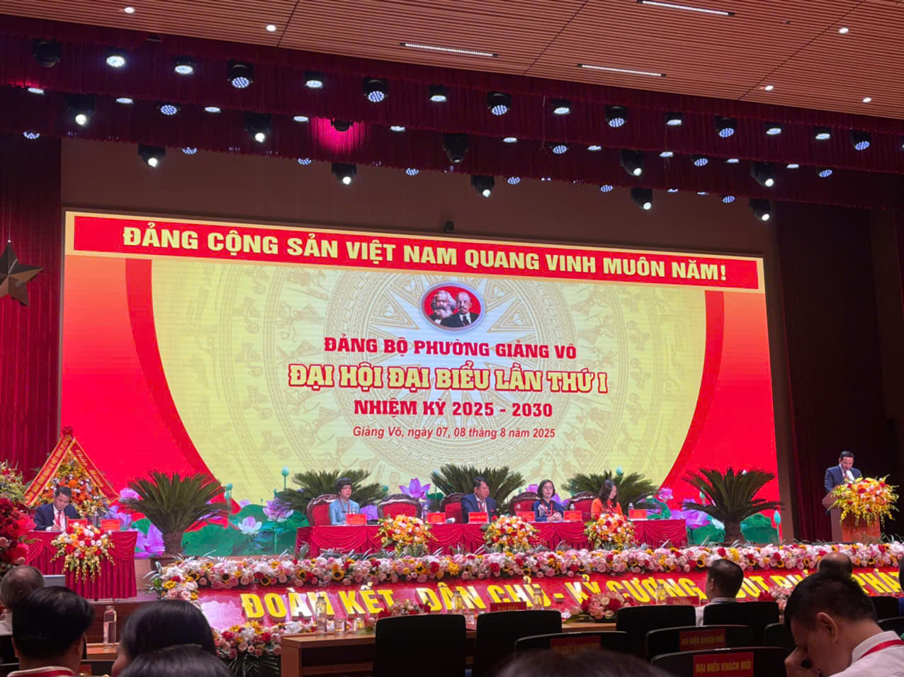 Đại hội Đảng bộ phường Giảng Võ lần thứ I, nhiệm kỳ 2025-2030 diễn ra trong không khí long trọng, trang nghiêm với chương trình văn nghệ đặc sắc và các bài tham luận hiệu quả cũng như tinh thần quyết tâm thực hiện Nghị quyết thắng lợi của đông đảo các đại biểu và lãnh đạo các cấp tham dự trong buổi lễ đã góp phần cho thành công rực rỡ của Đại hội.
