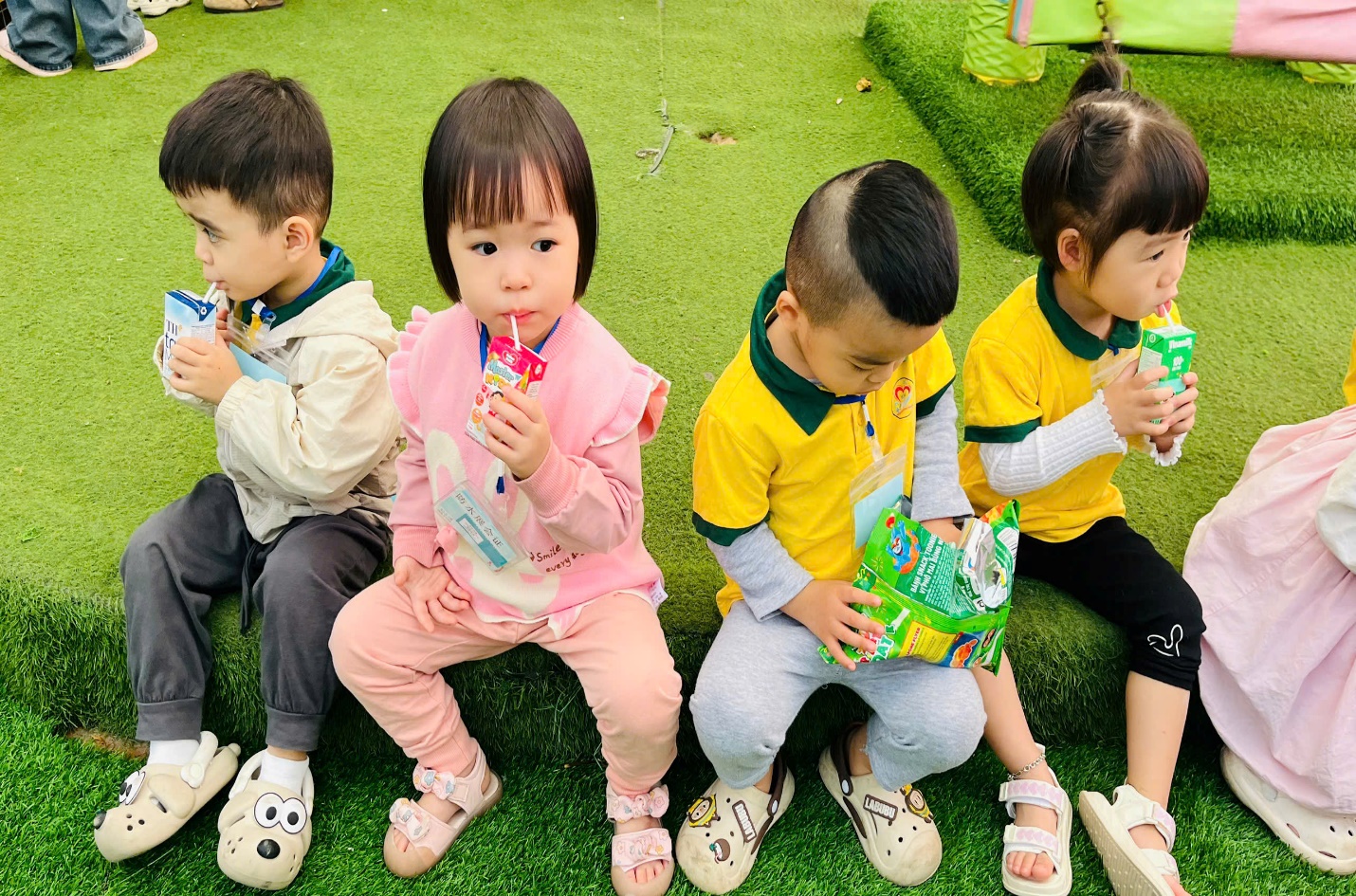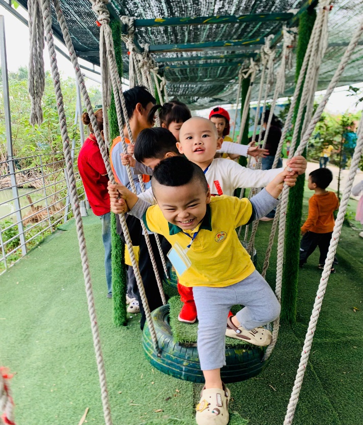 Ngay từ khi bắt đầu chuyến đi, các bé đã có cơ hội trải nghiệm hoạt động trượt cỏ đầy phấn khích. Cả khu vực rộng lớn được phủ một lớp cỏ xanh mướt, là nơi lý tưởng để các bé lao xuống từ những dốc nhỏ, trượt một cách nhanh chóng và vui vẻ. Những tiếng cười vang vọng trong không khí, khi các bé thi nhau trượt xuống với tốc độ chóng mặt. Đây không chỉ là một trò chơi đầy niềm vui mà còn là cách tuyệt vời để các bé khởi động và sẵn sàng cho những hoạt động tiếp theo.