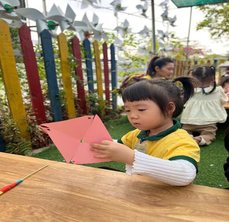 Chuyến đi tiếp tục với khu vực sáng tạo, nơi các bé có thể thỏa sức tạo ra những sản phẩm nghệ thuật nhỏ xinh. Các bé tự tay làm chong chóng giấy đầy màu sắc và nặn tò he thành những hình thù đáng yêu. Đây là lúc các bé phát huy khả năng sáng tạo, tạo dấu ấn riêng biệt của bản thân qua từng tác phẩm.
