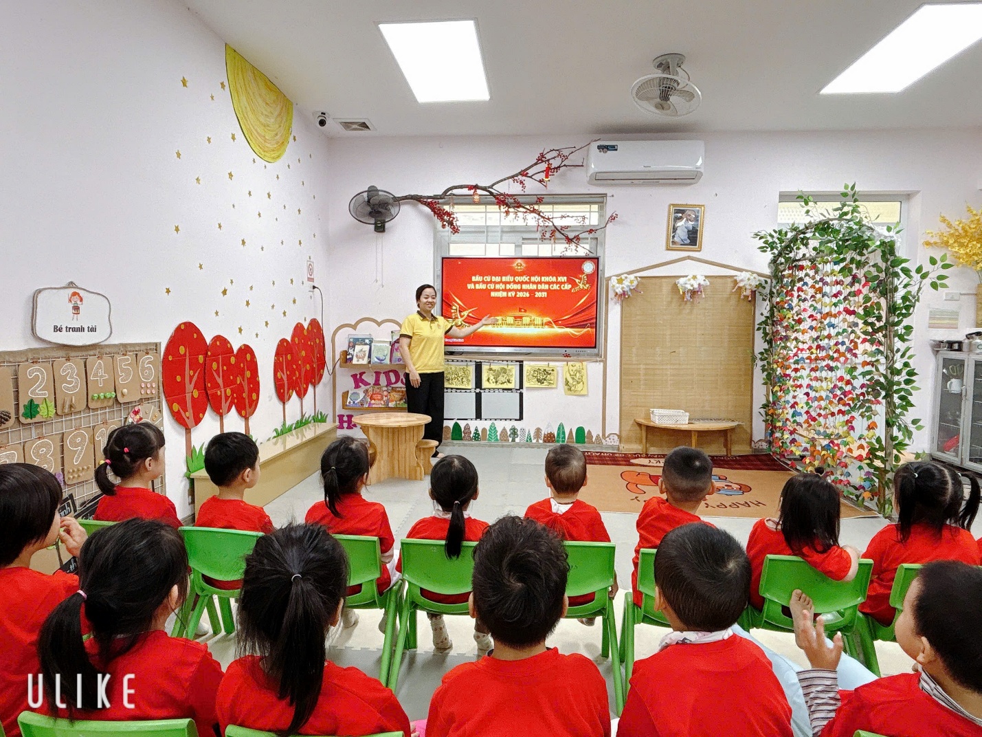 Tại lớp học thân yêu, dưới sự hướng dẫn ân cần của các cô giáo, các bé đã cùng nhau xem những đoạn video ngắn giới thiệu về Ngày hội bầu cử. Những hình ảnh sinh động, gần gũi đã giúp các bé bước đầu hiểu rằng đây là dịp để mỗi người dân thực hiện quyền và trách nhiệm của mình, lựa chọn những đại biểu tiêu biểu đại diện cho ý chí và nguyện vọng của nhân dân. Ánh mắt chăm chú, những câu hỏi ngây thơ nhưng đầy tò mò của các bé đã làm cho giờ học trở nên vô cùng ấm áp và ý nghĩa.