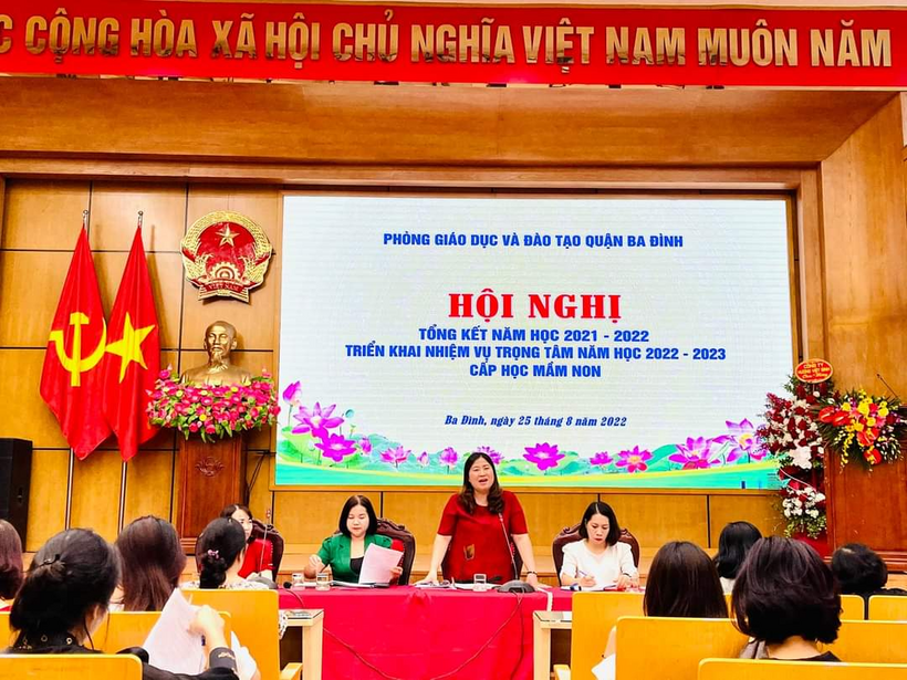 Chiều ngày 25/08/2022, Phòng Giáo Dục và Đào Tạo quận Ba Đình đã tổ chức “Hội nghị tổng kết năm học 2021-2022, triển khai nhiệm vụ trọng tâm năm học 2022-2023 cấp học mầm non”.