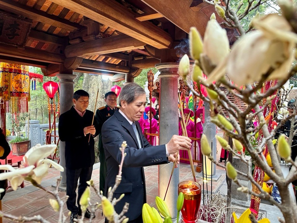Tại buổi lễ đ/c Hoàng Minh Dũng Tiến - Bí thư Quận ủy Ba Đình cùng các đ/c lãnh đạo quận đã dâng hương để tỏ lòng tri ân công lao Đức Thánh.