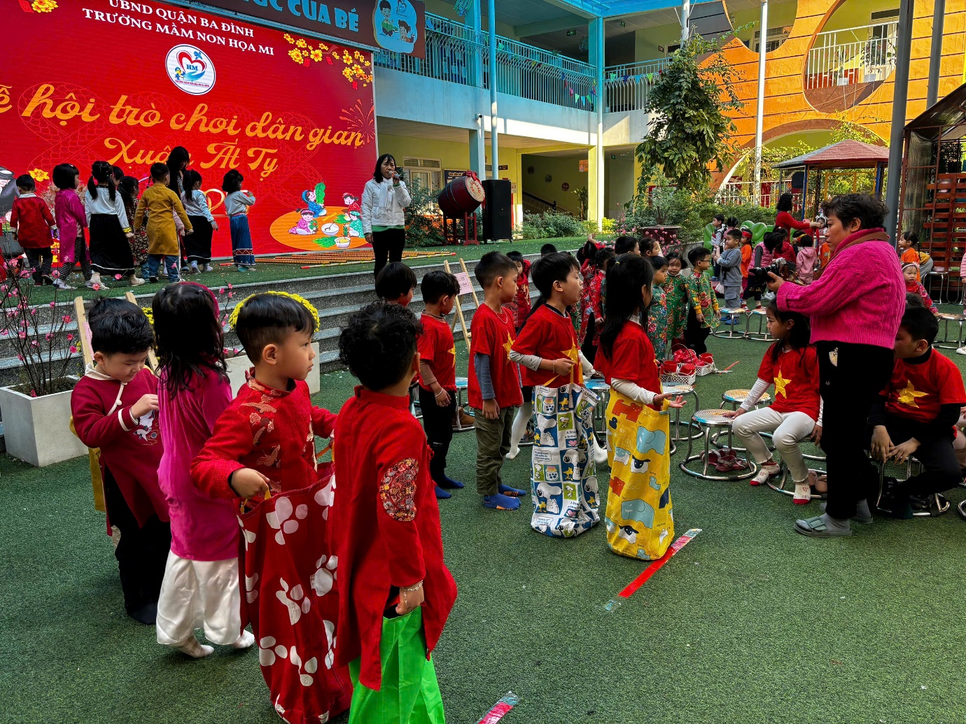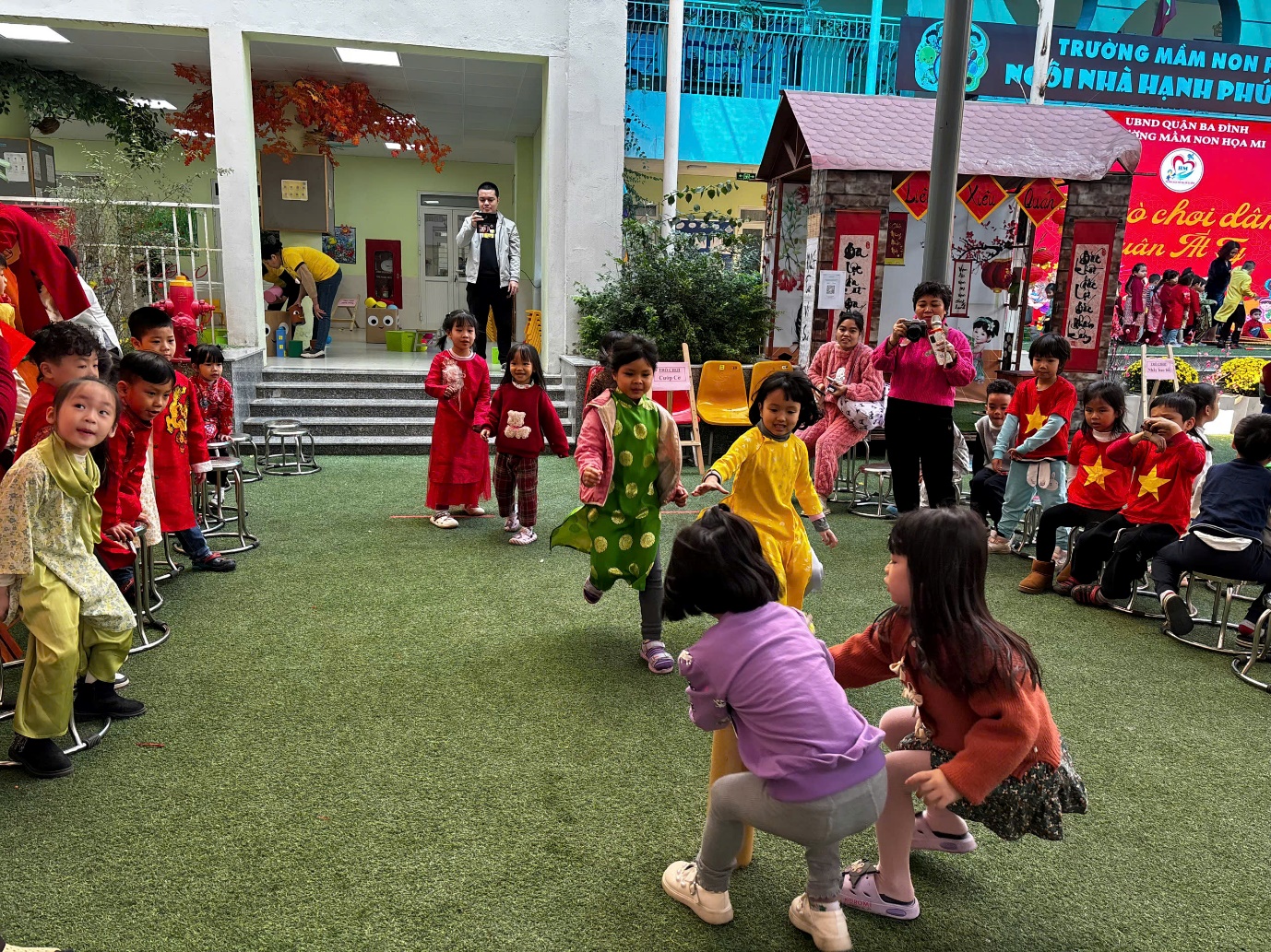 Các bé được tham gia nhiều các hoạt động trải nghiệm cùng cô giáo và bố mẹ như: Chuẩn bị gian hàng, trưng bày, mua, bán, dạo chơi, tham quan, ngoài ra các bé còn được giao lưu văn nghệ, các trò chơi dân gian như: Nhảy bao bố, cướp cờ , nhảy sạp, kéo co…….