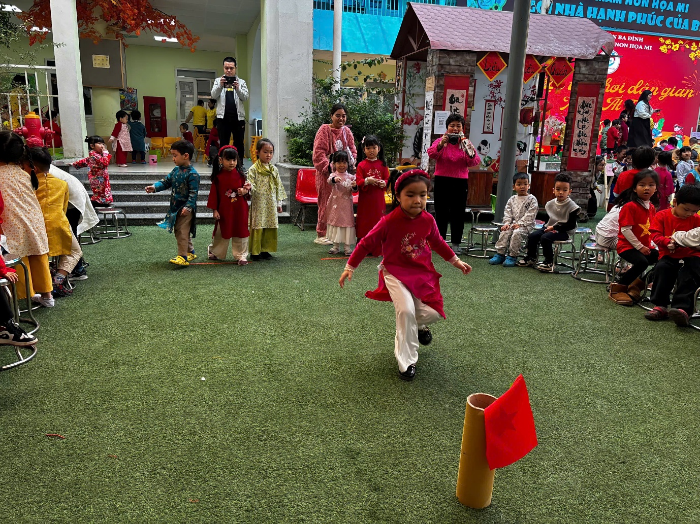 Nhằm tạo điều kiện cho trẻ được trải nghiệm, mạnh dạn, tự tin trong giao tiếp, phát huy năng khiếu nghệ thuật, thẩm mỹ, đồng thời có vốn hiểu biết về ngày Tết cổ truyền của dân tộc Việt Nam và không khí đón Tết. Tạo không khí phấn khởi vui tươi chào đón tết cổ truyền của dân tộc cho trẻ. Trẻ được cùng cô giáo tham gia vào các hoạt động như vui xuân: Làm lịch, Gói bánh chưng, trang trí lớp , làm bao lì xì, vẽ chữ thư pháp và đặc biệt là tham gia hội chợ Xuân.