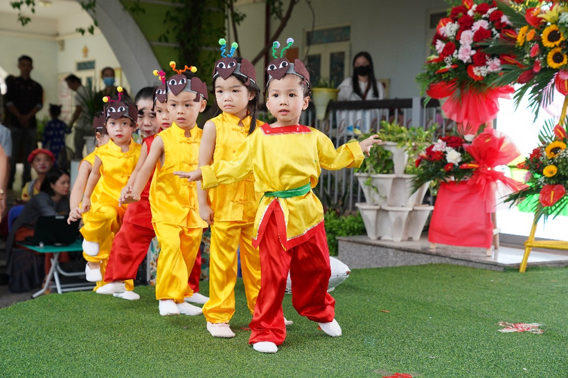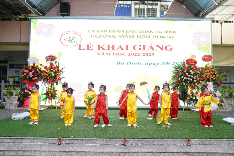 Các tiết mục văn nghệ của các con học sinh tuy còn vụng về, ngượng ngịu nhưng để có được thành công đó là nỗ lực luyện tập của cả cô và trò trong nhiều ngày. Các tiết mục múa, hát thể hiện sự mạnh dạn, tự tin, đáng yêu và niềm hân hoan chào đón khai giảng của các bé.