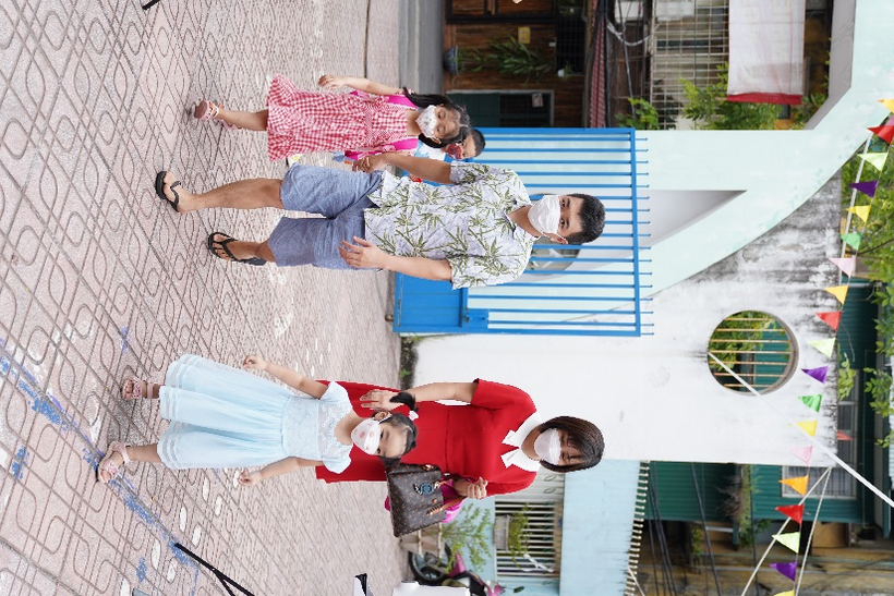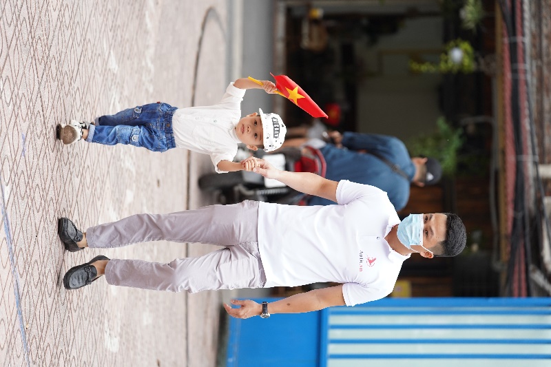 Cha mẹ phấn khởi đưa các bé đến trường dự khai giảng năm học mới