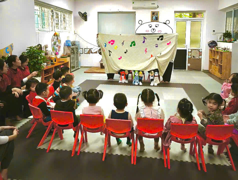 Hoạt động này không chỉ giúp các bé cảm nhận âm nhạc mà còn khéo léo lồng ghép những bài học ý nghĩa vào từng giai điệu.